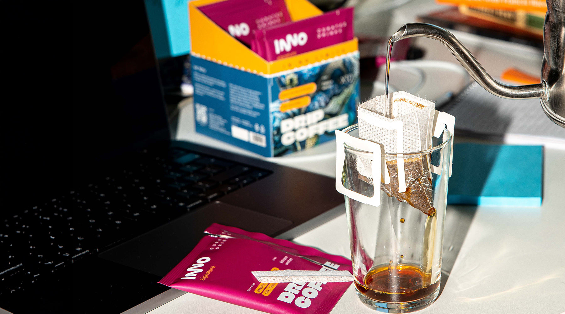 INNO is a curated drinks brand from Amsterdam. Founded by two women — one from art, one from hospitality — we create thoughtful drinks for modern rituals. No machines, no hassle, no compromise. Together with top roasters and emerging artists, we craft mobile specialty drinks you can enjoy anywhere. We bring art out of galleries and coffee out of cafes — into your everyday.